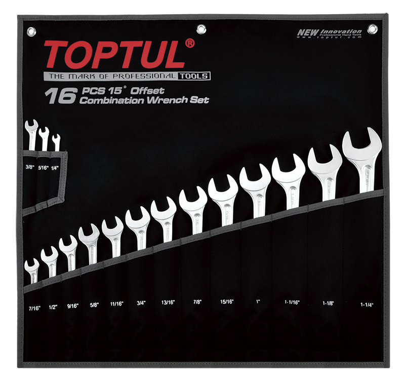 Набор ключей комбинированных дюймовых 1/4"-1-1/4", 16 предметов на полотне TOPTUL GPBX1601 купить в Перми и других городах России