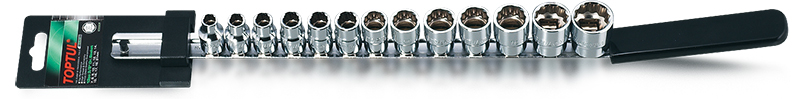 Набор головок 3/8" 12-гранных 7-21 мм, 13 предметов, на планке TOPTUL