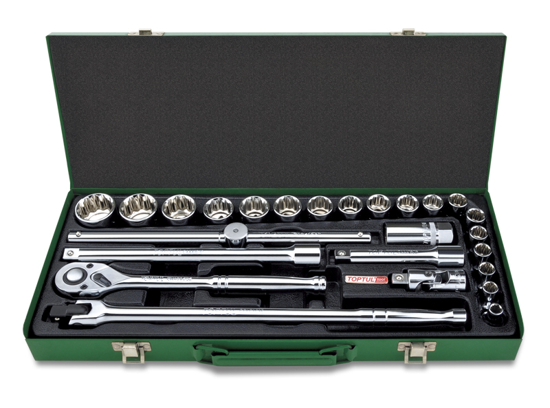 Набор головок и аксессуаров 1/2" 12-гранных дюймовых 5/16"-1-1/4", 25 предметов в метал.кейсе TOPTUL GCAD2514 купить в Перми и других городах России