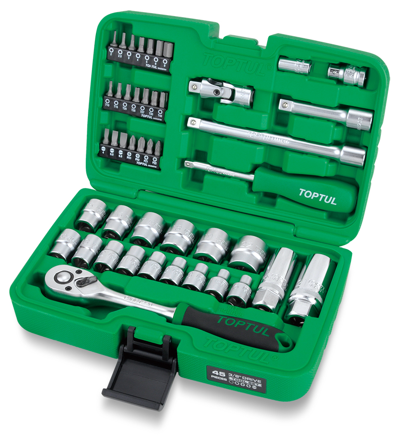 Набор головок и аксессуаров 3/8" 6-гранных 6-22 мм, 45 предметов TOPTUL GCAI4501 купить в Перми и других городах России