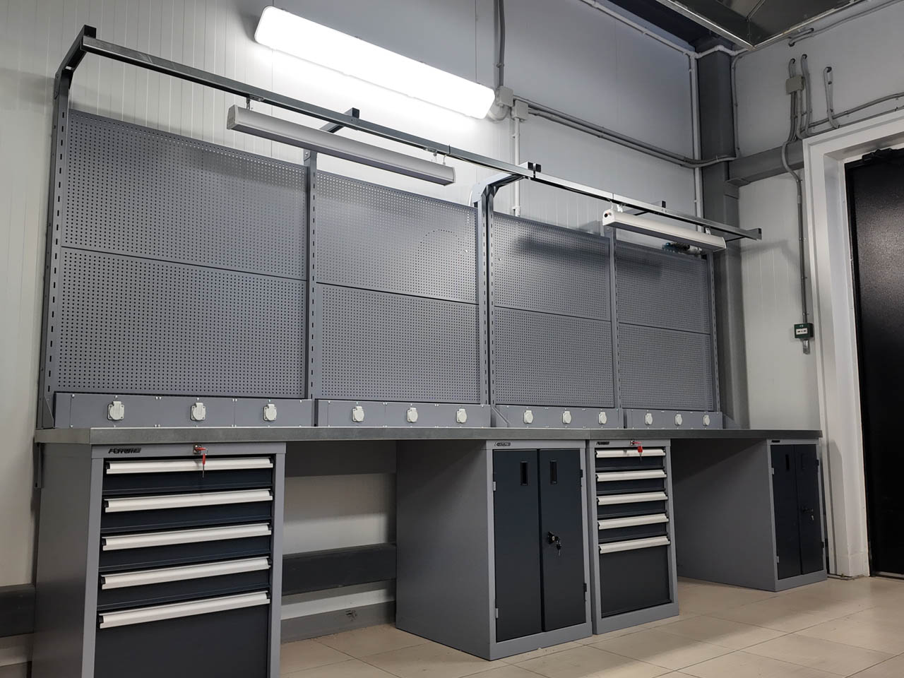 Отдельной задачей стал подбор, расстановка и монтаж стеллажей, шкафов и верстаков в 26 помещениях различного назначения. Это потребовало точного проектирования, учета логистики, эргономики и особенностей эксплуатации каждого помещения.